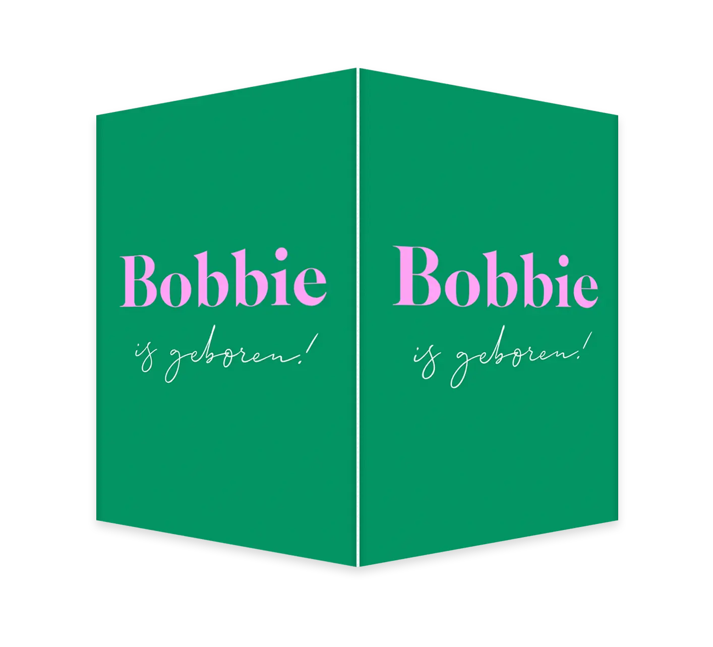 Kondig de geboorte van jullie kindje aan met een eigen ontworpen geboortebord! Dit staande bord heeft een groene achtergrond met daarop roze letters. Je maakt één zijde op in de editor en dit wordt vervolgens op twee zijdes gedrukt.