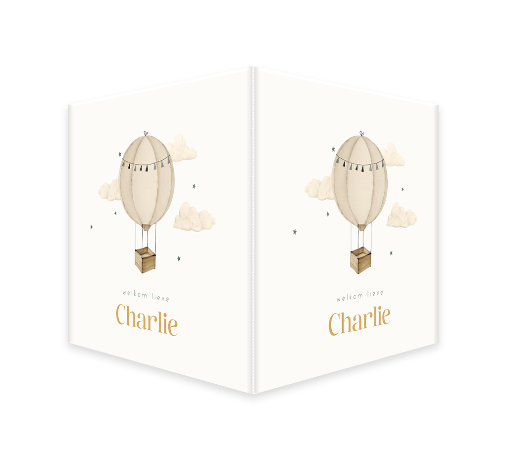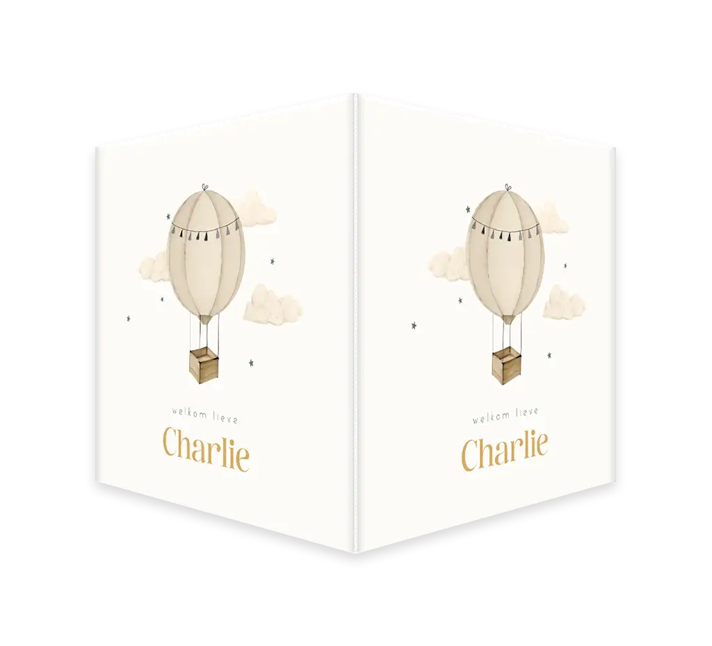 Een stijlvol raambord om de geboorte van jullie kindje aan te kondigen. Het bord heeft een prachtige illustratie van een luchtballon tussen de wolken.
