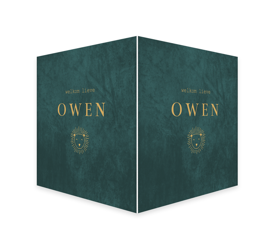 Wat een stoer raambord. Het vierkante bord heeft een stoere groene structuur achtergrond. Daar op zie je goudlook letters en een lijntekening van een leeuwenkop. Pas het ontwerp naar wens aan.