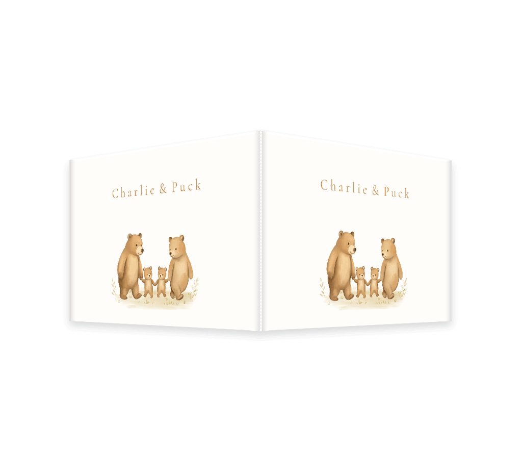 Laat iedereen weten dat jullie tweeling is geboren met dit dubbele raambord met lief design! Een vader en moeder beer lopen hand in hand met hun berentweeling.
