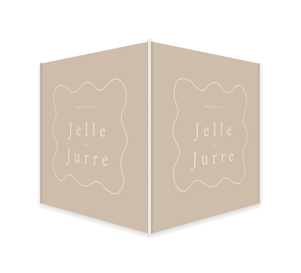 Vierkant raambord in zacht beige met getekende golflijn om de namen