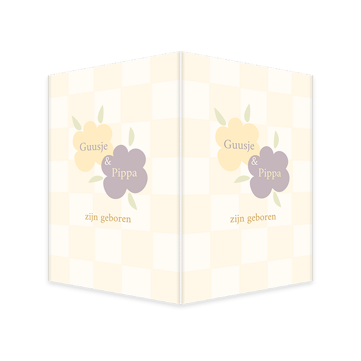 Vrolijk raambord met een zachtgeel ruitjespatroon om de geboorte van jullie lieve meisjes aan te kondigen! Pas de namen op dit dubbelzijdige raambord eenvoudig zelf aan in onze online editor.