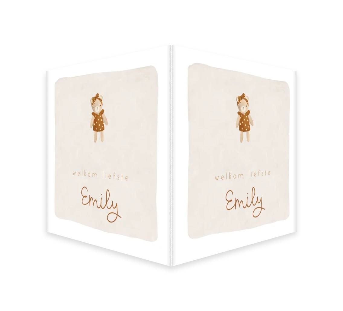 Een beige raambord. Het bord heeft een illustratie van een knuffeltje. Pas het ontwerp naar wens zelf aan.