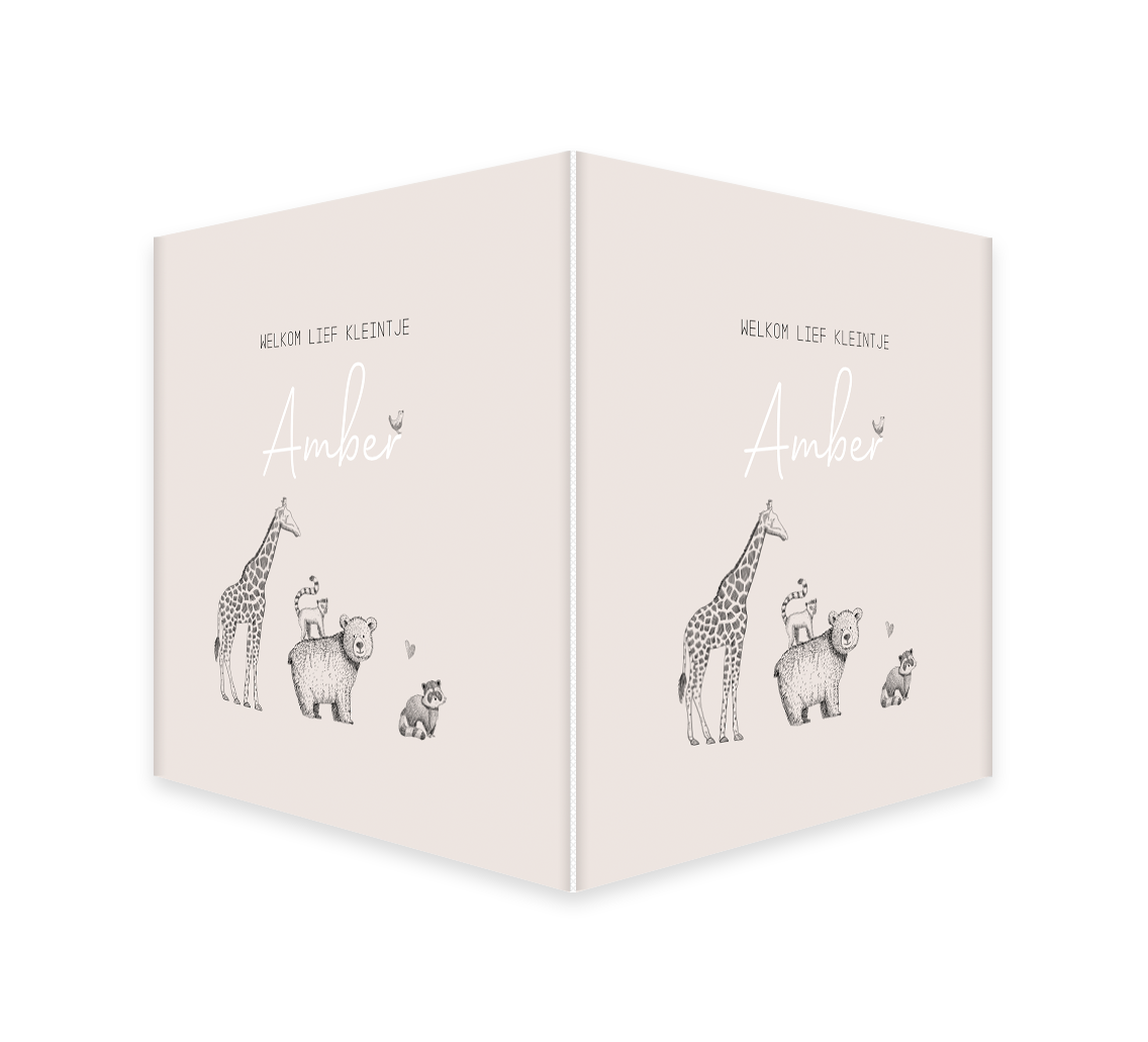 Laat iedereen weten dat jullie kindje is geboren met dit leuke beige raambord! Onder de tekst staat een vrolijk tafereel met giraffe, aap, beer en wasbeer met een klein vogeltje op de naam. Het makelaarsbord kan gemakkelijk bewerkt worden in onze online editor. Je maakt één zijde op in de editor en dit wordt vervolgens op twee zijdes gedrukt.
