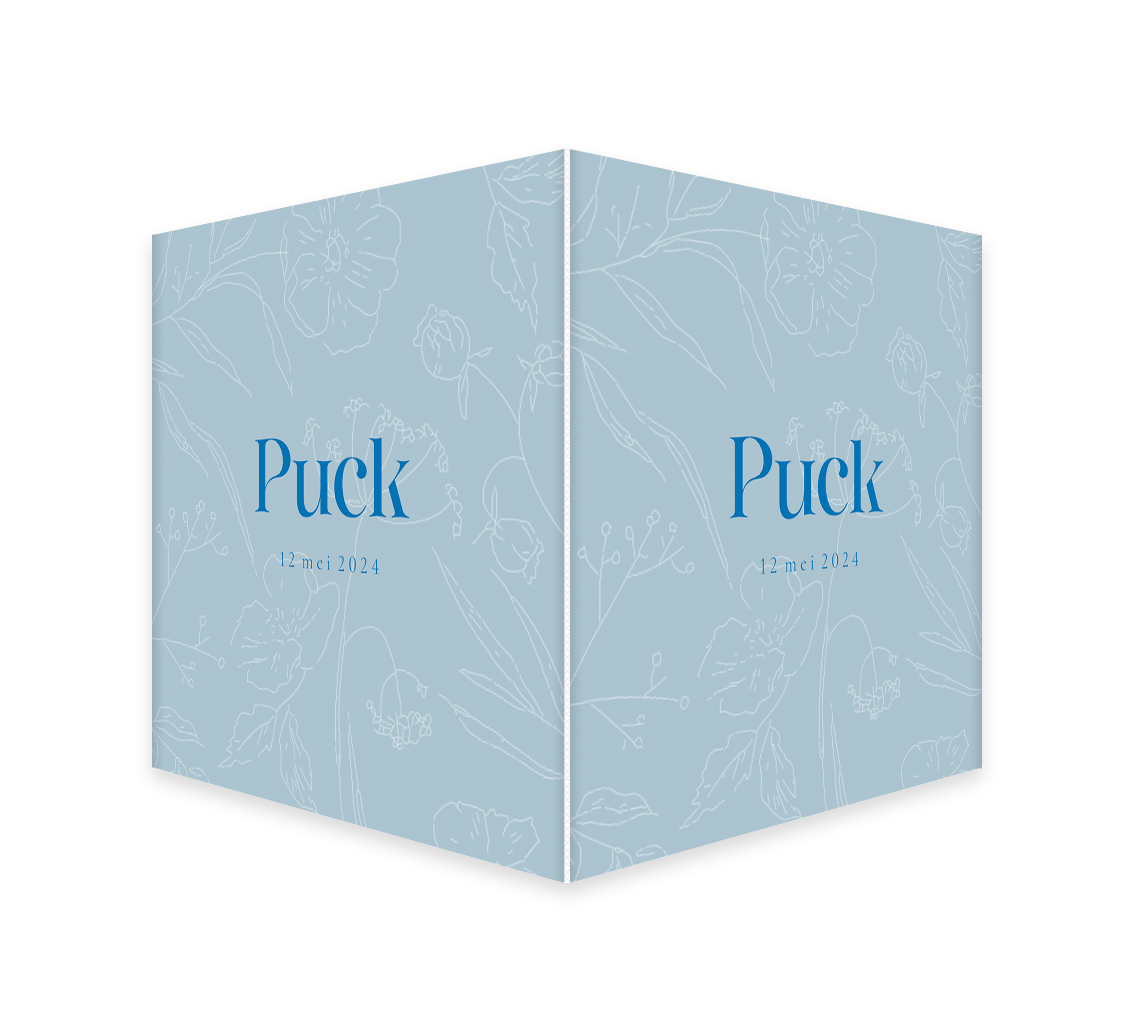 Een gaaf raambord om de geboorte van jouw kindje aan te kondigen. Het bord heeft een blauwe achtergrond met daarop witte lijntekeningen van bloemen.