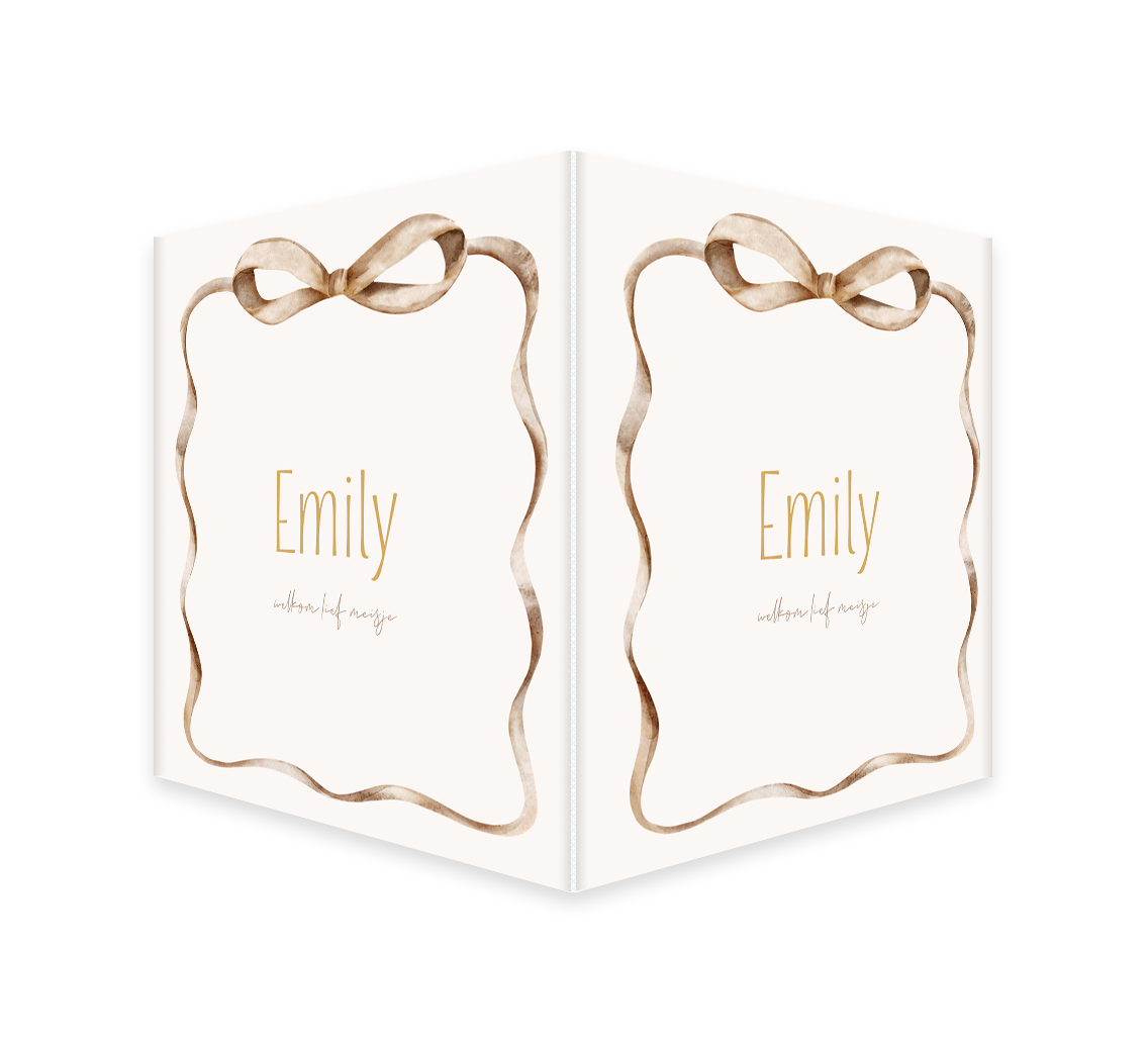 Een stijlvol raambord om de geboorte van je kindje aan te kondigen. Het bord heeft een bruine watercolour illustratie van een strik. In het midden lees je de naam. Pas het ontwerp naar wens aan in onze online editor.