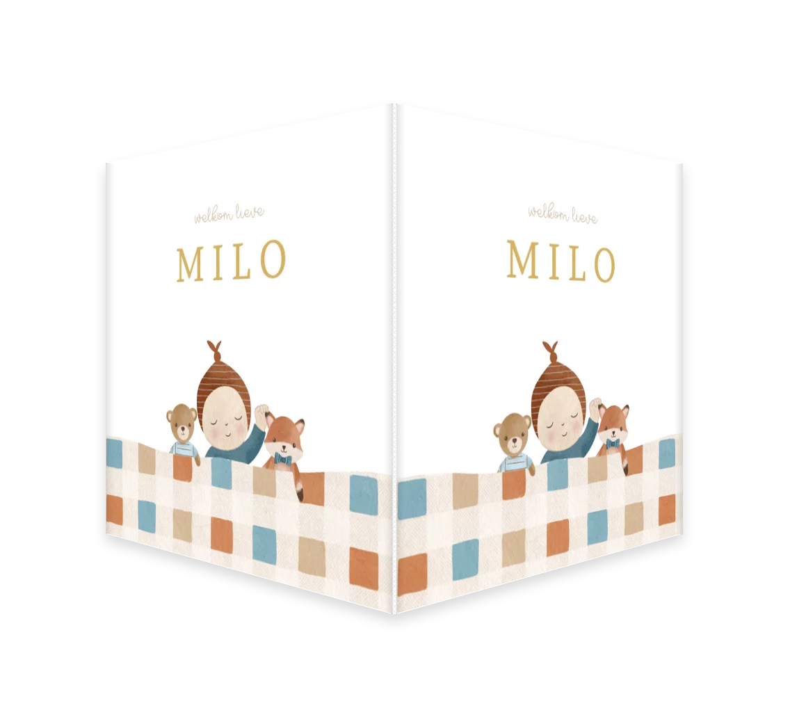 Wat een lief raambord! Dit bord heeft een illustratie van een kindje onder een dekentje met knuffels. Pas het ontwerp naar wens aan in onze online editor.