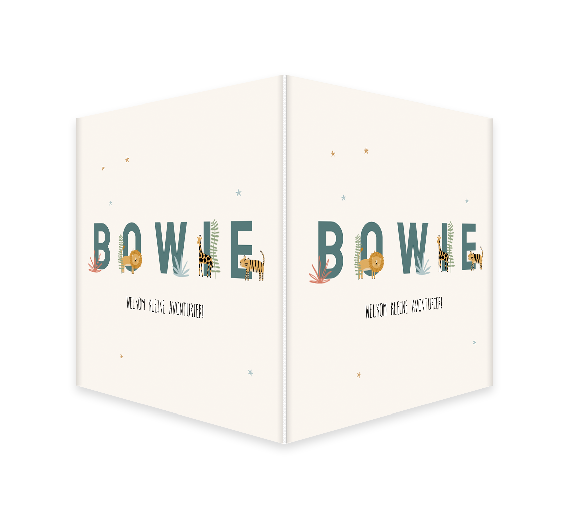 Een vrolijk vierkant raambord met lieve jungledieren. Om de illustraties heen zie je vrolijke sterretjes. Pas het bord naar wens aan in de online editor.