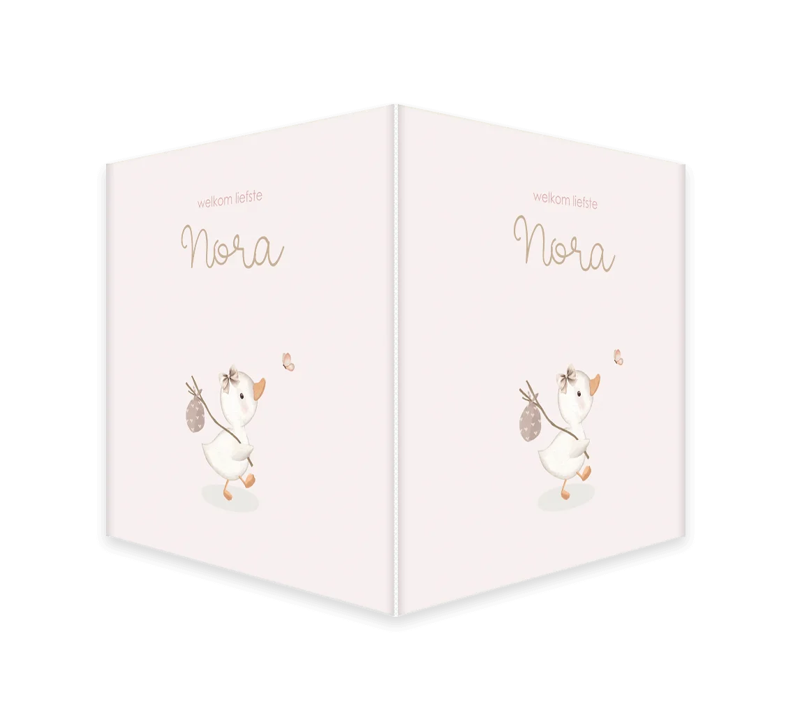 Een schattig raambord in de stijl van het geboortekaartje. Het bord heeft een lichtroze achtergrond met daarop een illustratie van een eendje. Pas het ontwerp naar wens aan in onze online editor.