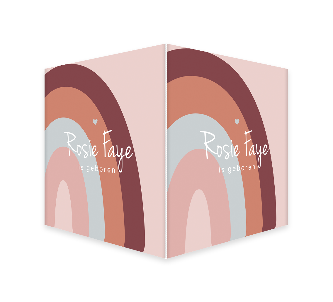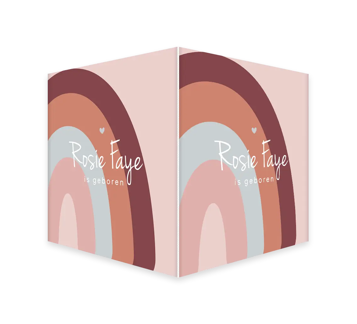 Wat een hip raambord voor de geboorte van jullie kindje. Het bord heeft een roze achtergrond met daarop een stijlvolle regenboog in verschillende kleuren. Pas het ontwerp naar wens zelf aan.