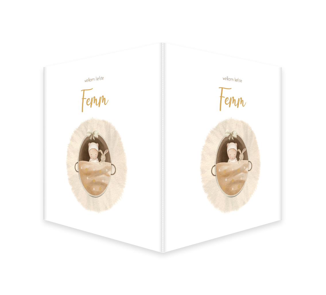 Een lief raambord om de geboorte van jouw meisje aan te kondigen. Het bord heeft een witte achtergrond met daarop een lieve illustratie van een baby in een mandje. Pas het ontwerp naar wens aan in de online editor.