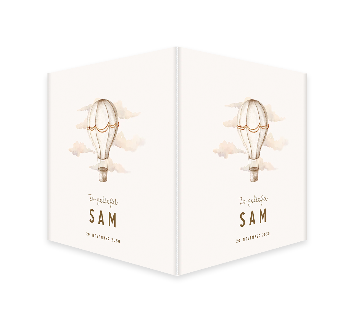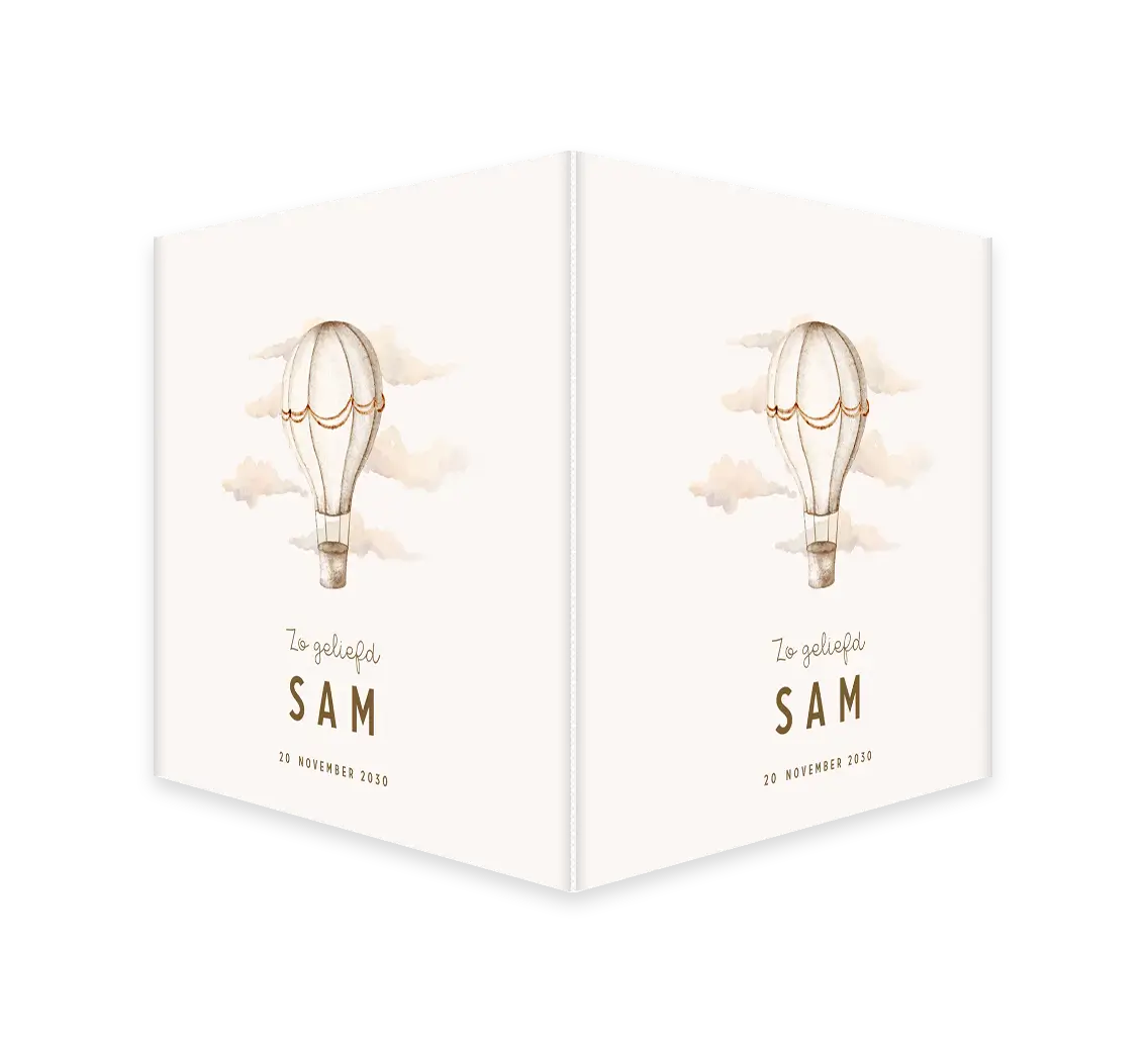 Kondig de geboorte van jouw kindje aan door middel van een raambord. Het bord heeft een lichte achtergrond met daarop wolkjes en een luchtballon. Pas het ontwerp naar wens aan.