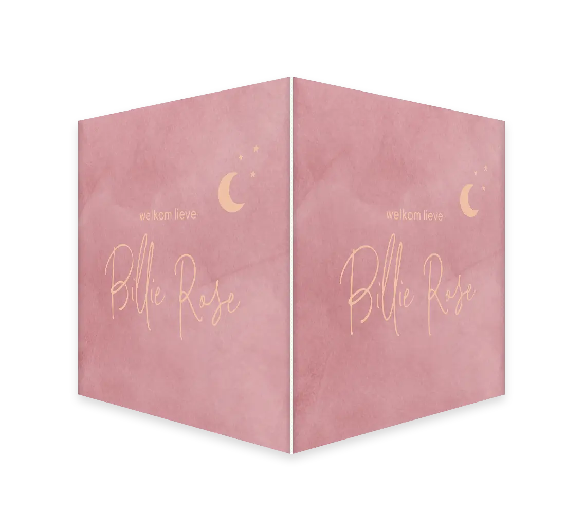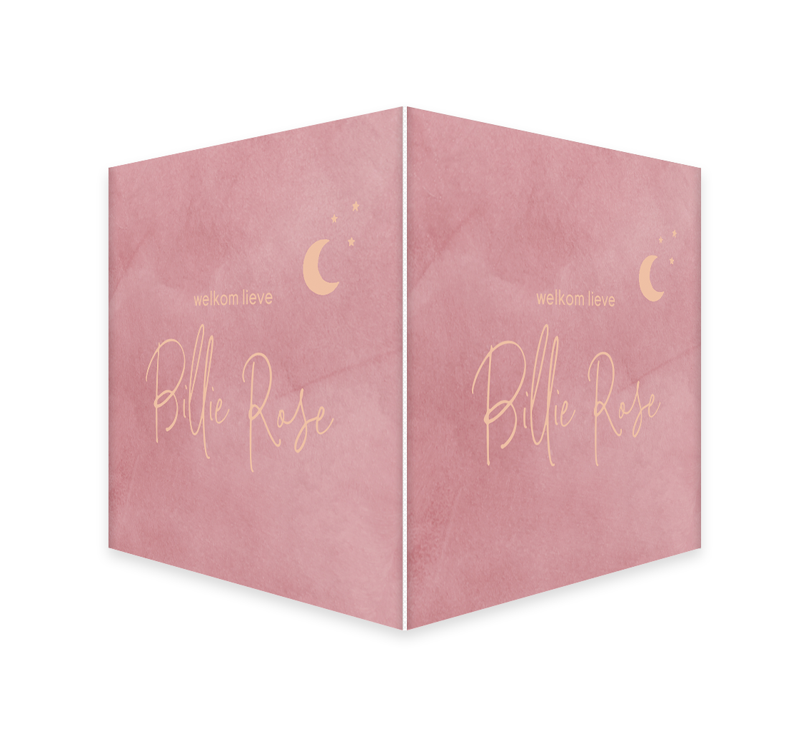 Kondig de geboorte van jullie kleintje aan met dit geboortebord. Het bord heeft een lichtroze velvet-look achtergrond met maan en sterren. Pas het bord helemaal naar wens aan in onze online editor.