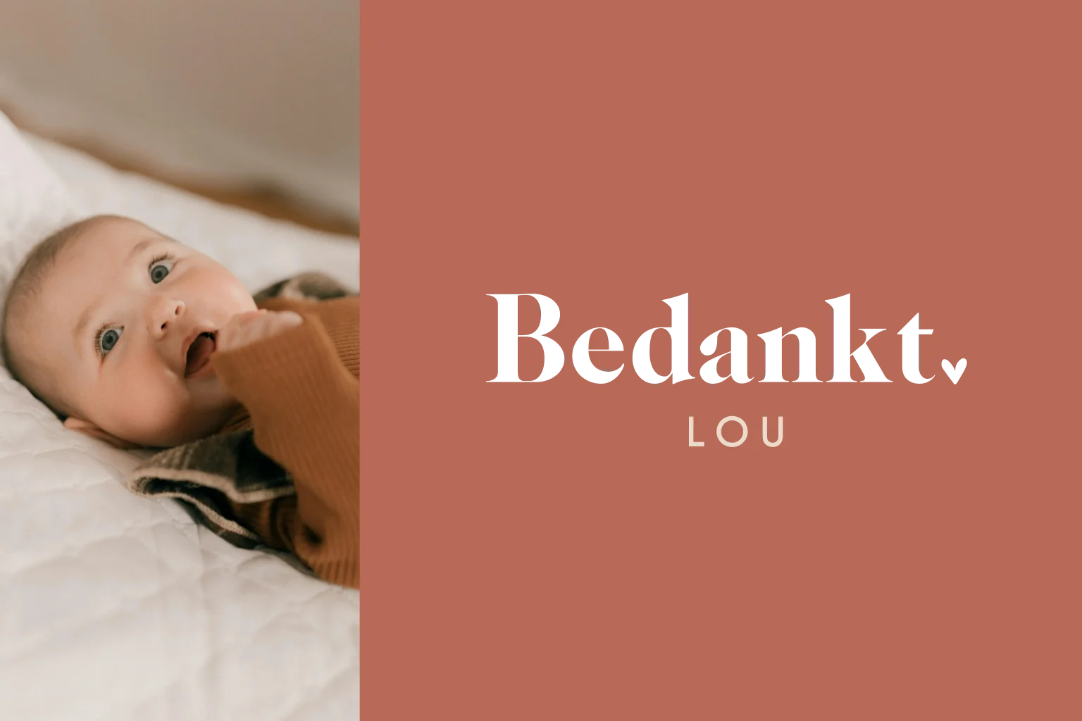 Bedankkaart met foto en goudfolie op roestbruin