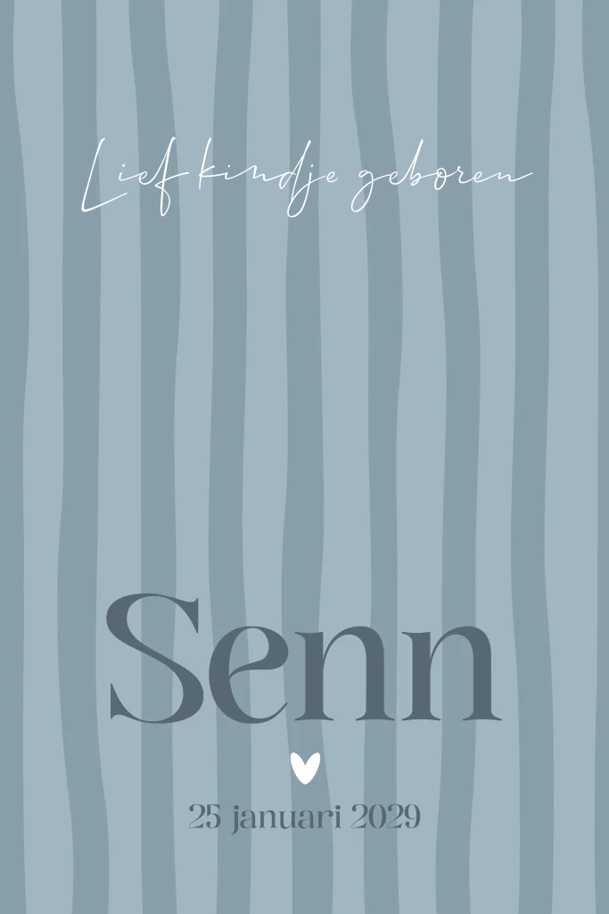 Lief geboortekaartje met blauw gestreept patroon. Personaliseer eenvoudig in onze online editor.Plaats zelf de teksten en elementen eenvoudig op de juiste plek in onze opmaaktool. Heb je hier hulp bij nodig? Neem gerust even contact met ons op!