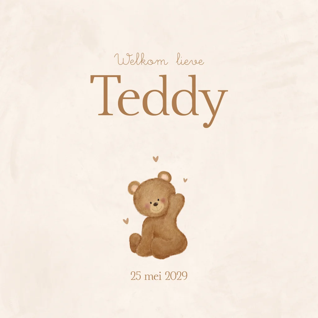 Een lief geboortekaartje met beer illustratie. Pas het ontwerp naar wens aan in onze online editor.Dit design is nu toegevoegd aan je eigen collectie.