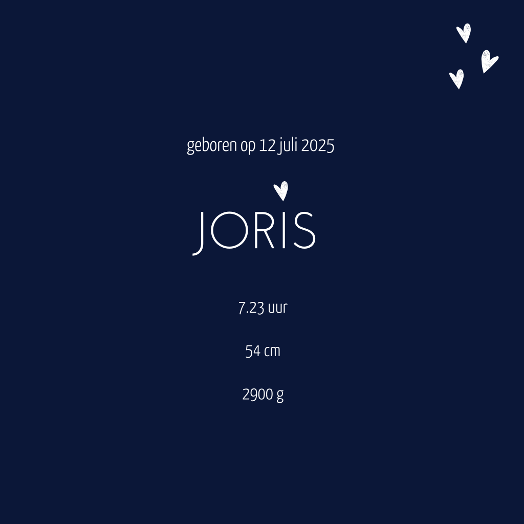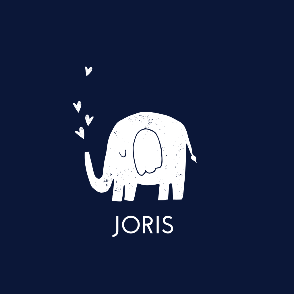 Hip geboortekaartje met een lief olifantje met hartjes uit zijn slurf. De hartjes en naam van jullie zoon worden gedrukt in goudfolie. Het kaartje is gemaakt met stempels en daardoor extra uniek! Bewerk dit kaartje naar wens in de online editor.