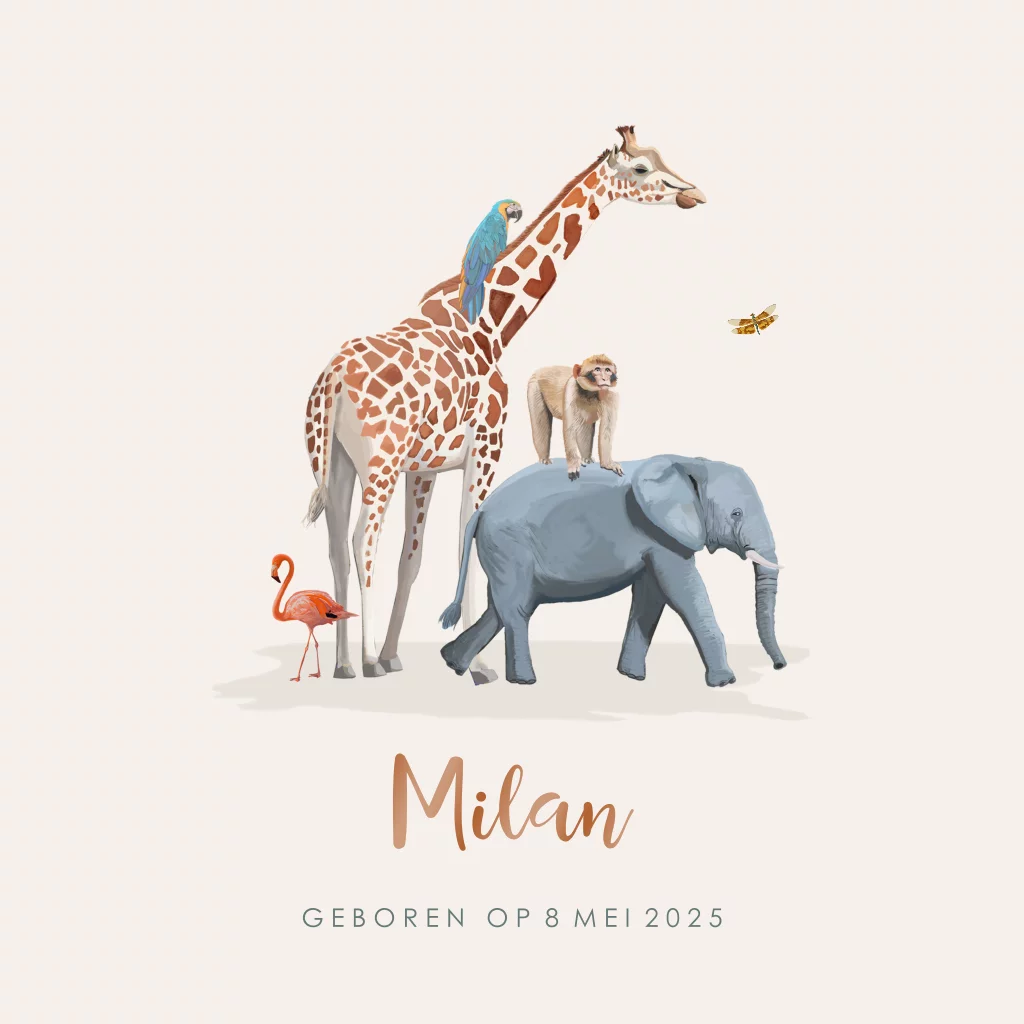 Luxe hoogglans geboortekaartje met jungle dieren voor een jongen