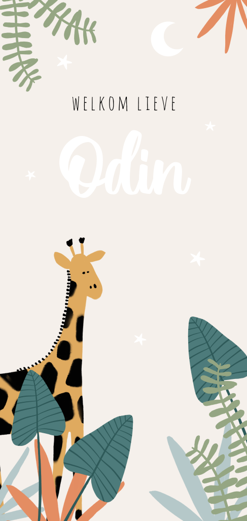 Jungle goudfolie geboortekaartje met giraffe voor een jongen