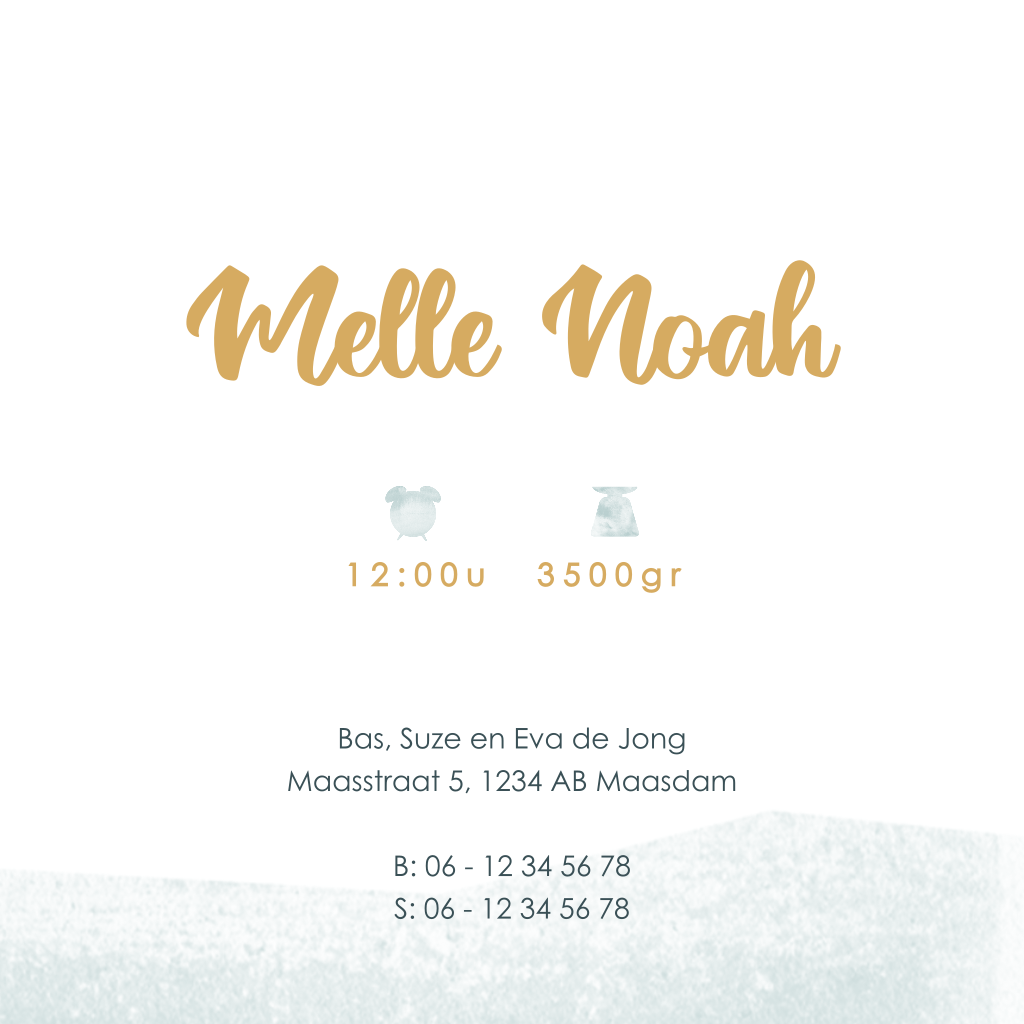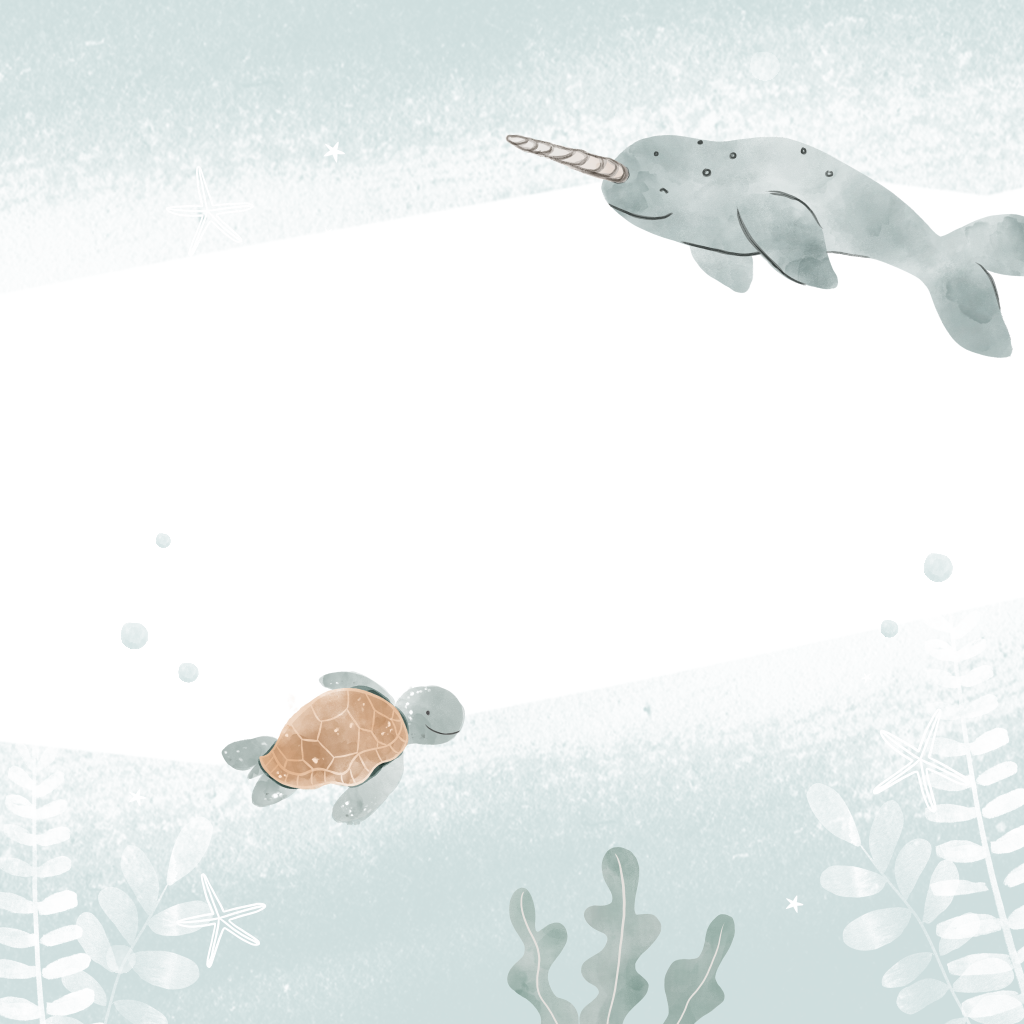 Dit is een trendy babykaartje met onderwaterwereld voor de geboorte van je zoon. In de oceaan zwemmen een zeeschildpad en dolfijn. De naam, geboortedatum en zeesterren worden gedrukt in goudfolie. Bestel snel een proefdruk om dit prachtige kaartje in het echt te zien!