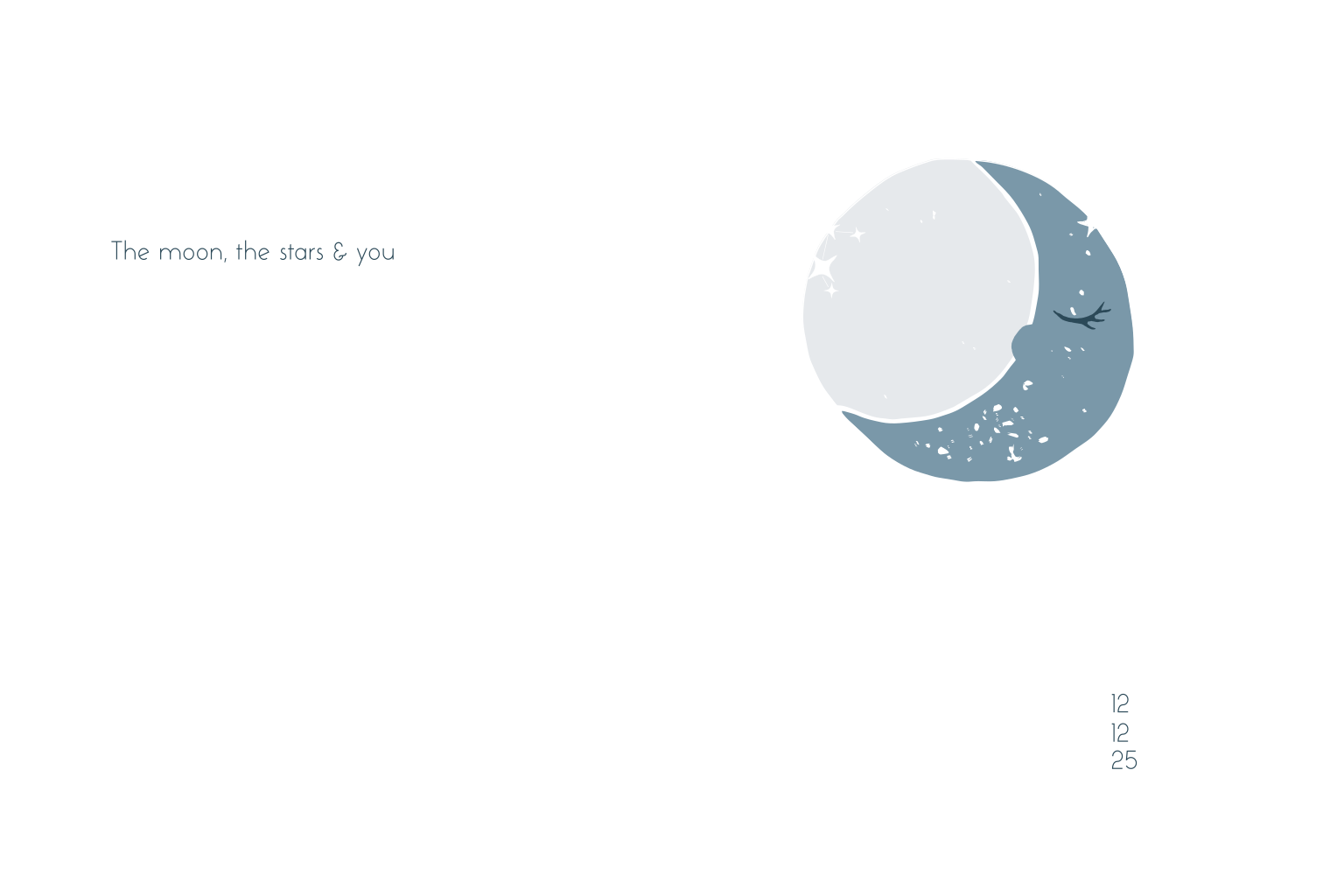 Kondig de geboorte van jullie zoontje aan met dit lieve kaartje. Op het kaartje staat de illustratie van een slapende maan met daar omheen goudfolie sterren en sterrenbeeld. Bestel snel een proefdruk om dit kaartje in het echt te zien!