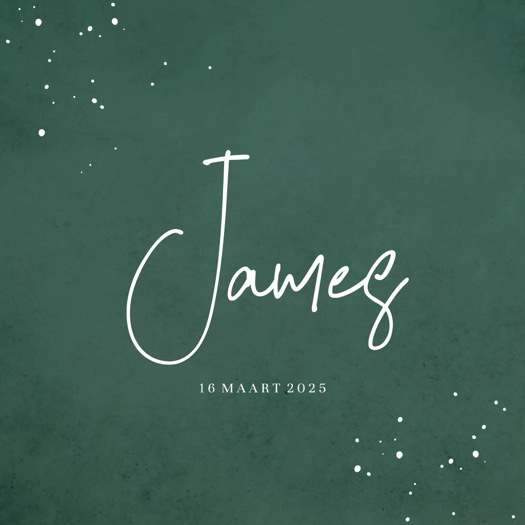 Kondig de geboorte van jullie zoontje aan met dit stoere kaartje! De groene velvet-look achtergrond in combinatie met de goudfolie typografie en details is prachtig. Pas het kaartje naar wens aan in onze online editor en bestel een proefdruk om dit kaartje in het echt te bewonderen!