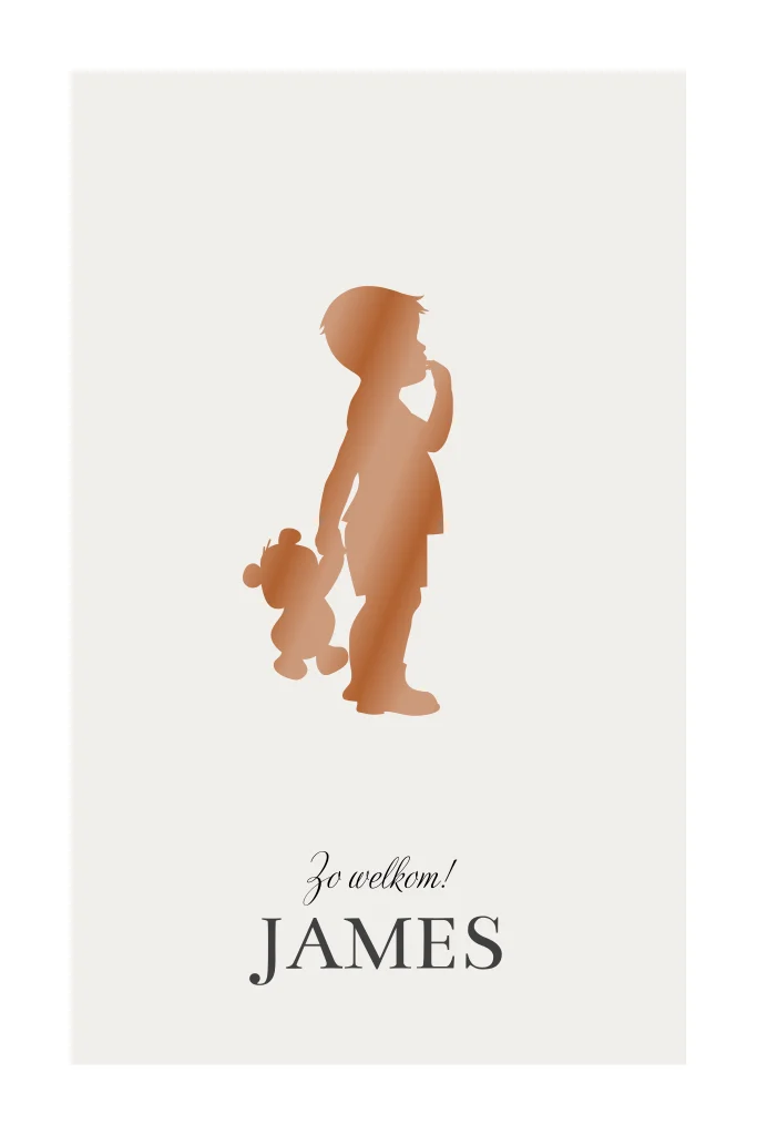 Geboortekaartje silhouet van jongen met knuffel in hoogglans