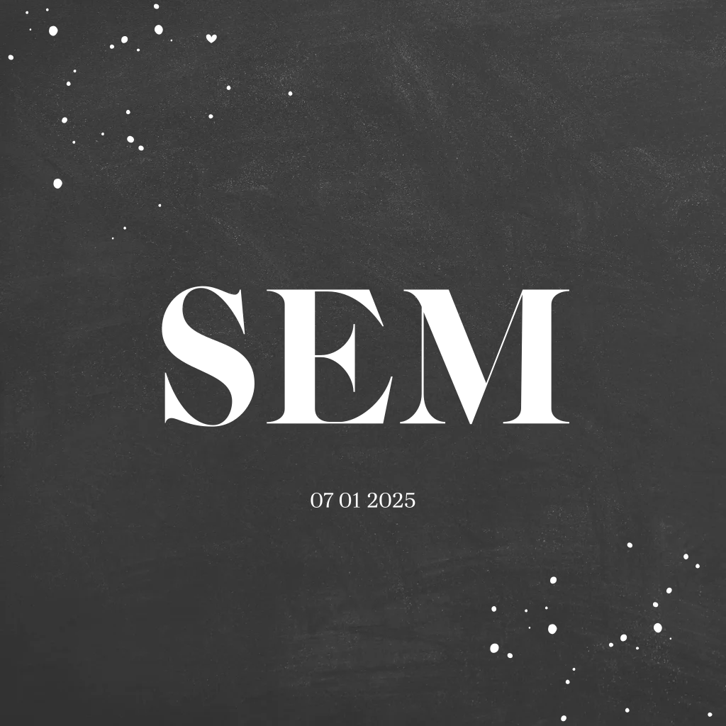 Kondig de geboorte van jullie zoontje aan met dit mega stoere kaartje. Het kaartje heeft een zwarte aquarel achtergrond. De naam en verfspetters worden gedrukt in zwart folie. Bestel snel een proefdruk om dit kaartje in het echt te zien!