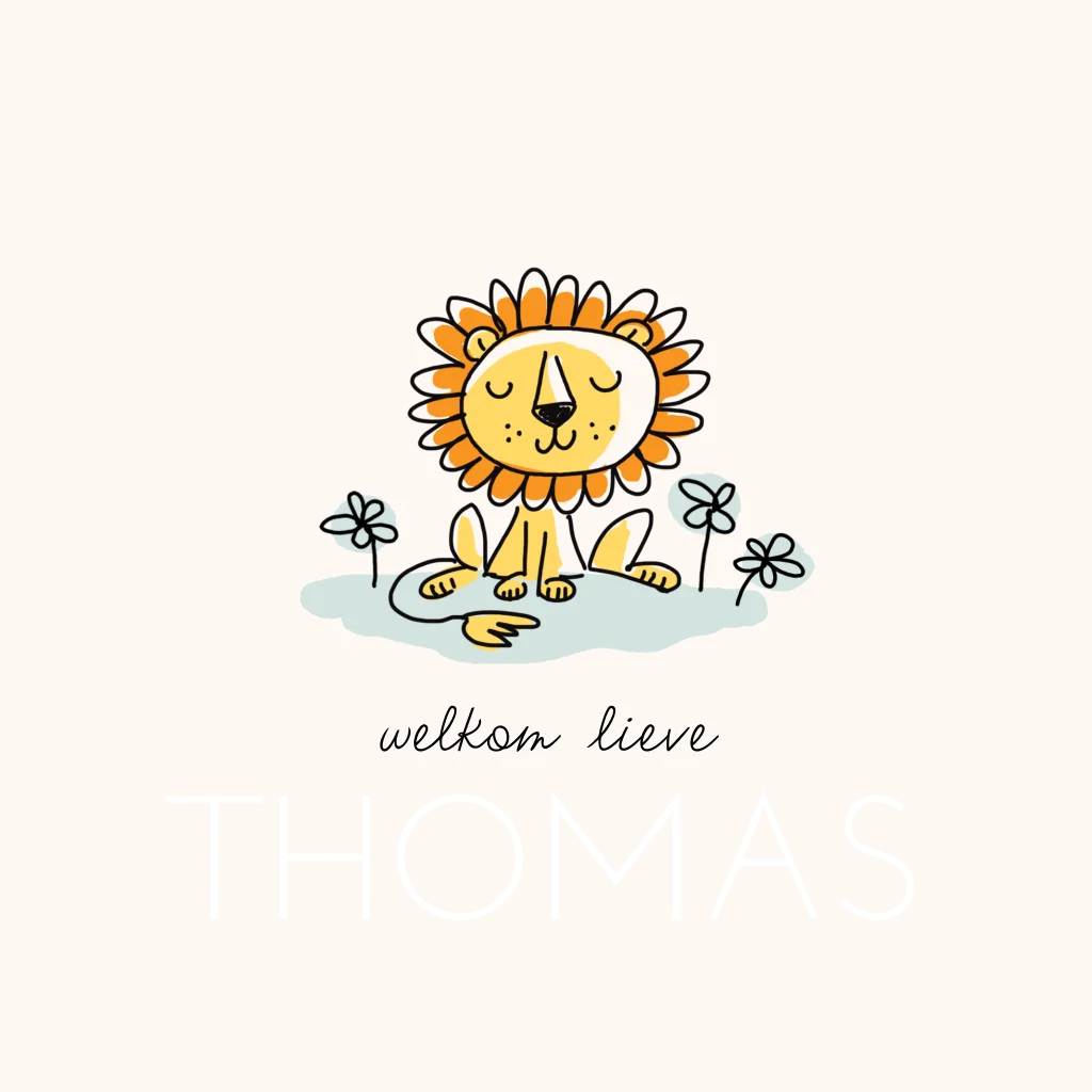 Wat een trendy babykaartje voor een jongen! Gepimpt met een lieve illustratie van een leeuwtje en helemaal compleet met de hippe letters van de naam van jouw baby in luxe goudfolie. Zo straalt jouw kaartje!