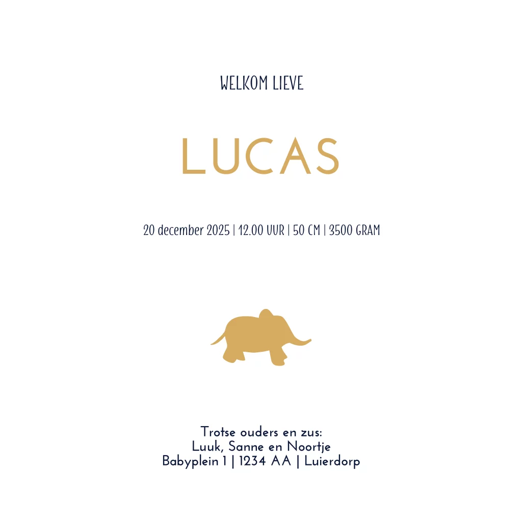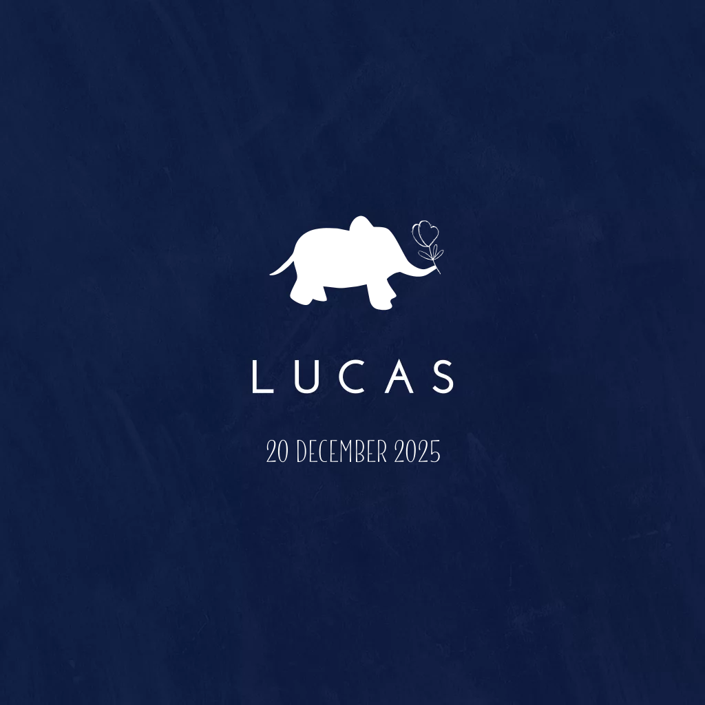 Geboortekaartje voor jongen met olifantje op donkerblauwe achtergrond