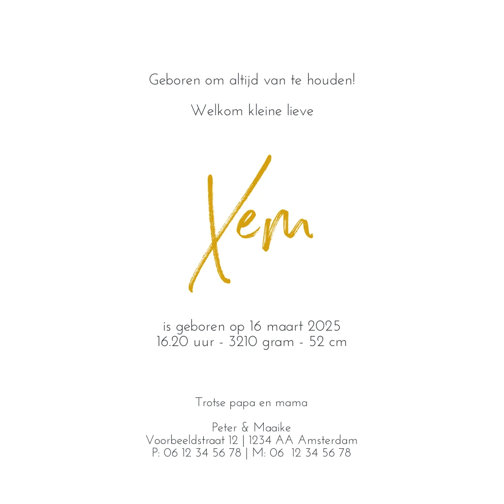 Hip goudfolie geboortekaartje met silhouet jongen op de traktor