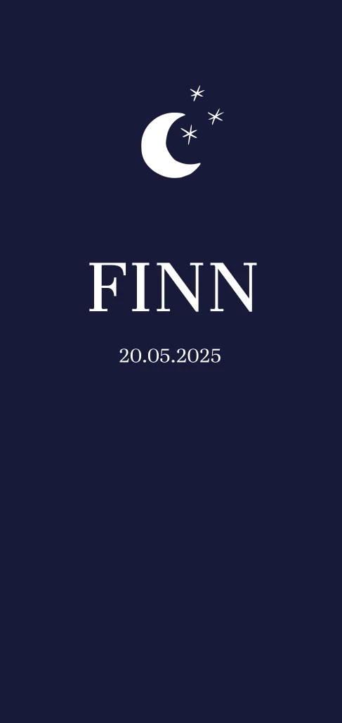 Hip geboortekaartje met goudfolie maan en sterren op een trendy donkerblauwe achtergrond. Liever een andere trendkleur? Pas het eenvoudig aan in de online editor!