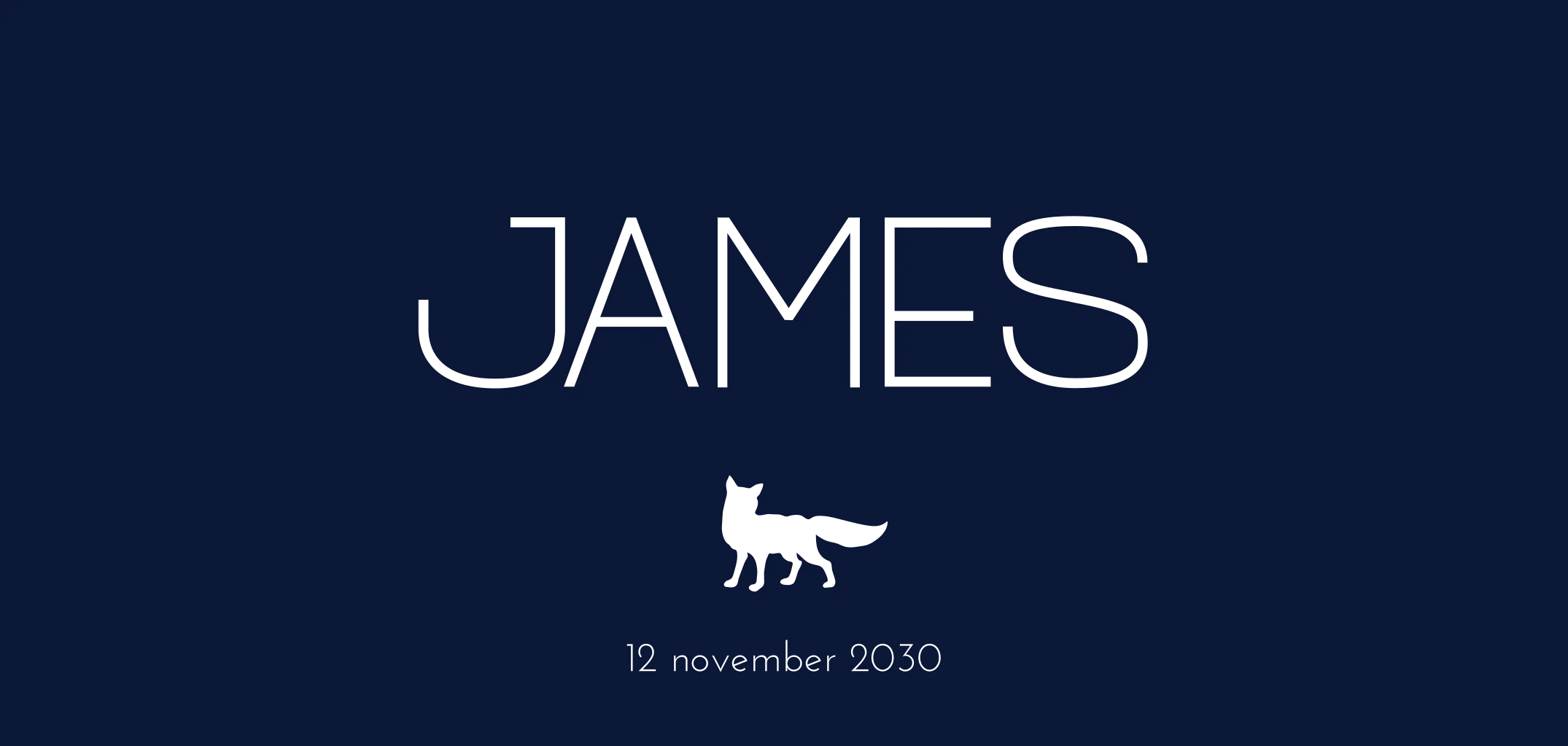 Gaaf minimalistisch geboortekaartje voor de geboorte van je zoontje met goudfolie silhouetje van een vosje op donkerblauw.