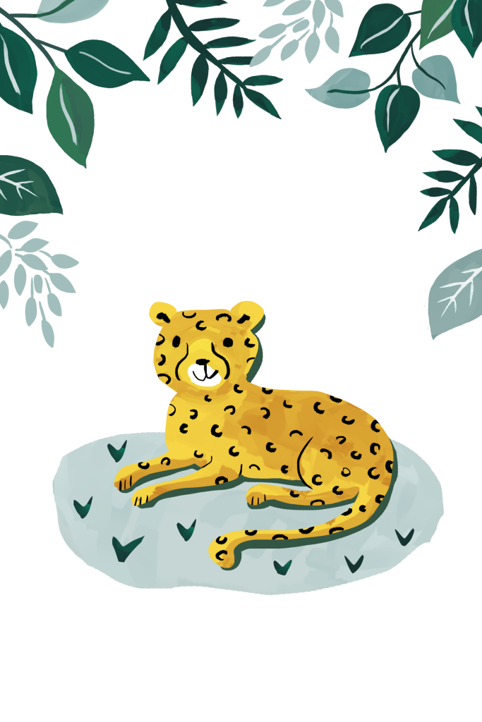 Illustratief geboortekaartje met goudfolie voor je zoon met unieke illustratie van panter en jungle bladeren.