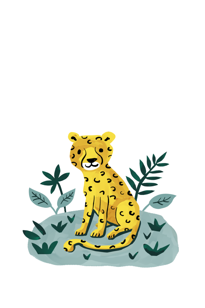 Trendy geboortekaartje met goudfolie voor de geboorte van je zoon met een hippe kleurrijke illustratie van een panter.
