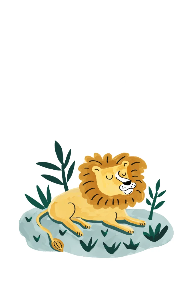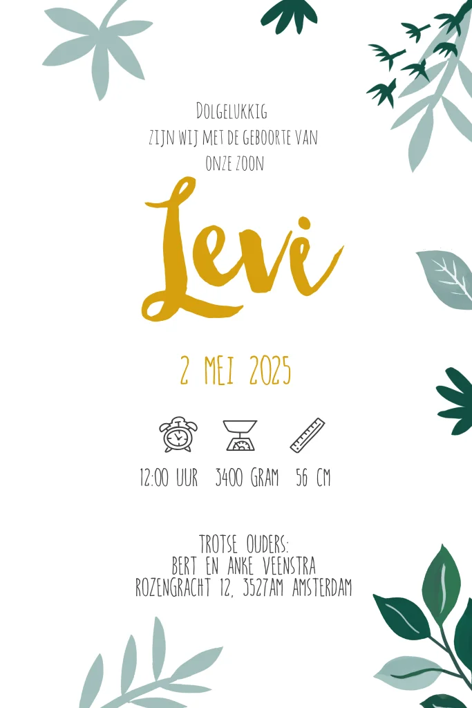 Uniek goudfolie geboortekaartje voor jongen met hippe en lieve illustratie van een slapende leeuw.