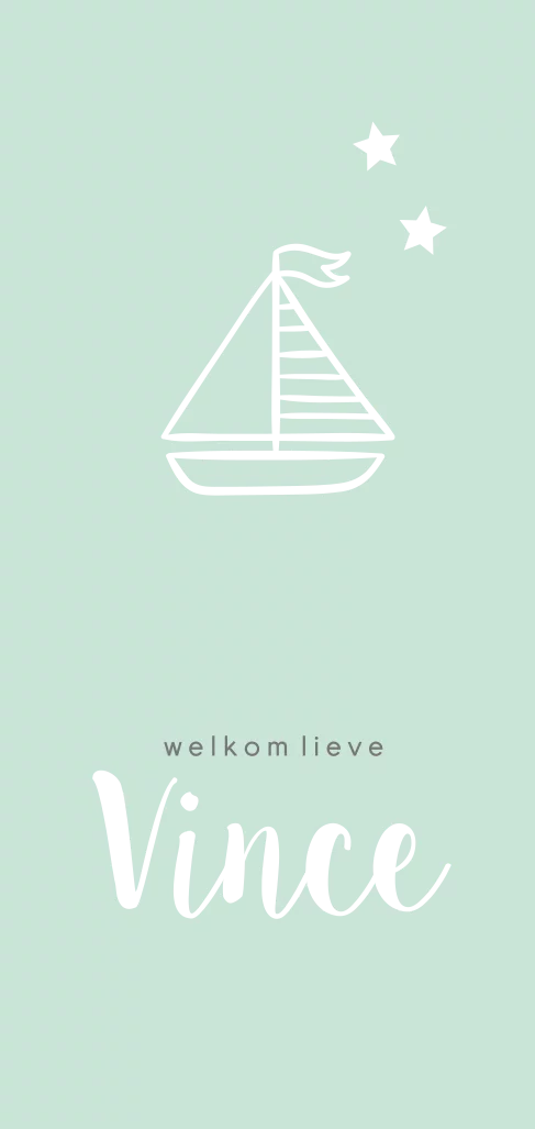Hip geboortekaartje in mintgroen met een bootje. Uniek: wordt gedrukt in luxe goudfolie! Dit geeft het kaartje een glanzende, trendy uitstraling! Iets voor jouw kleine jongen? Maak hem zelf af!