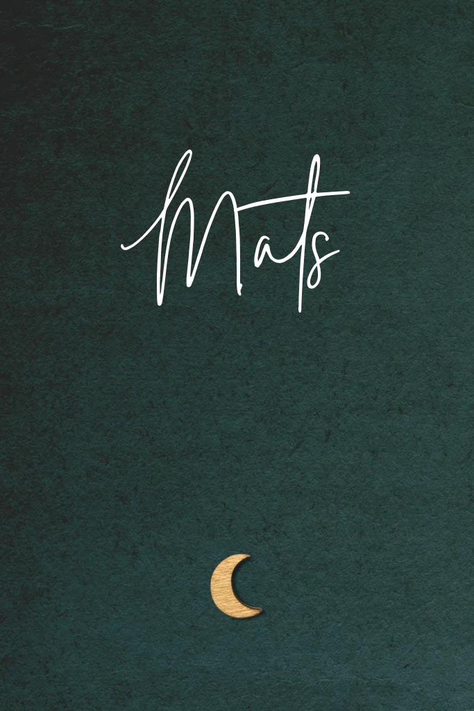 Avontuurlijk geboortekaartje voor de geboorte van je zoon met goudfolie op een trendy donkergroene achtergrond. Bestel echt houten maantjes en maak dit geboortekaartje helemaal af!