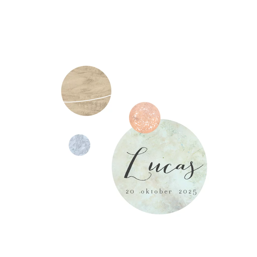 Hip goudfolie geboortekaartje voor je avontuurlijk zoontje met stoere planeten en maantje in het heelal.
