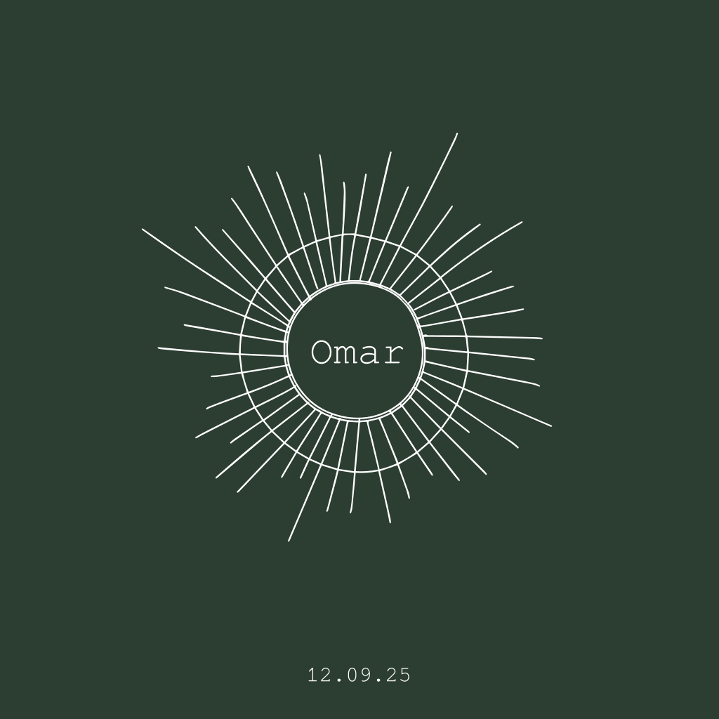 Stoer bohemian geboortekaartje voor de geboorte van je zoon met een hippe zon op een met donkergroene achtergrond. Verander zelf de kleuren van de achtergrond en het folie en maak dit geboortekaartje helemaal naar je eigen smaak!