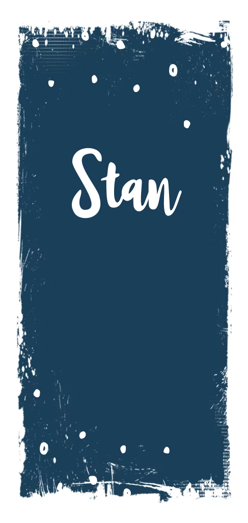 Stoere geboortekaart voor een jongen met een achtergrond van donkerblauwe verf strepen met daarom heen een wit kader. De goudfolie stipjes maken dit kaartje echt hip!