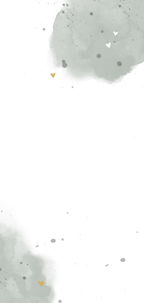 Bijzondere geboortekaart voor je pasgeboren zoon met unieke combinatie van olijfgroene waterverf vlekken en hartjes met goudfolie. Pas de kleuren en teksten aan om de kaart persoonlijk te maken.