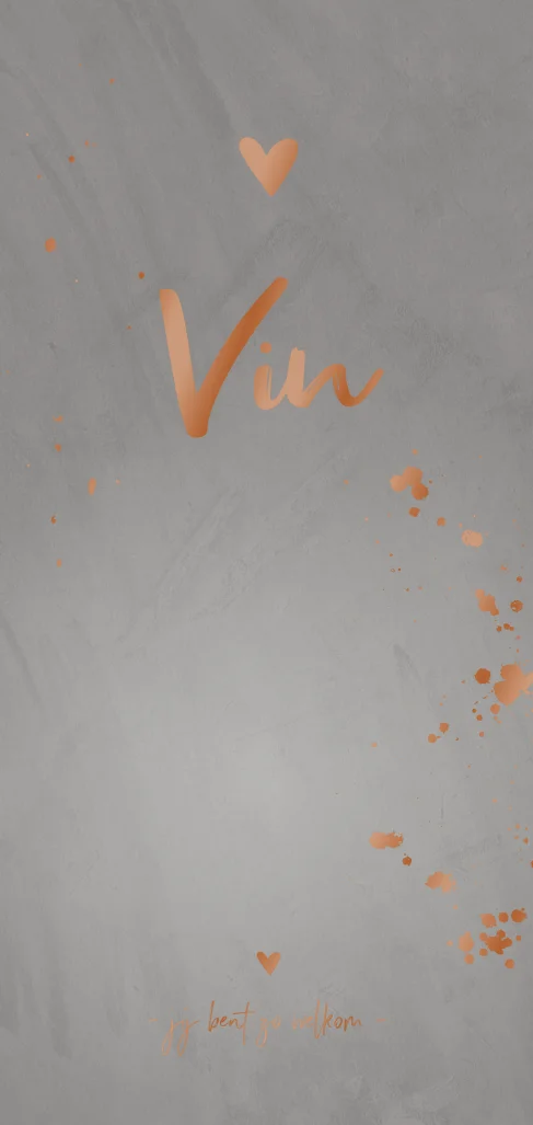 Dit trendy babykaartje met hoogglans accenten is super stoer om de geboorte van jullie zoon aan te kondigen! De hartjes en verfspatten maken het kaartje extra bijzonder. Het kaartje heeft een grijze achtergrond met een velvet look structuur. Pas de teksten aan in de online editor.
