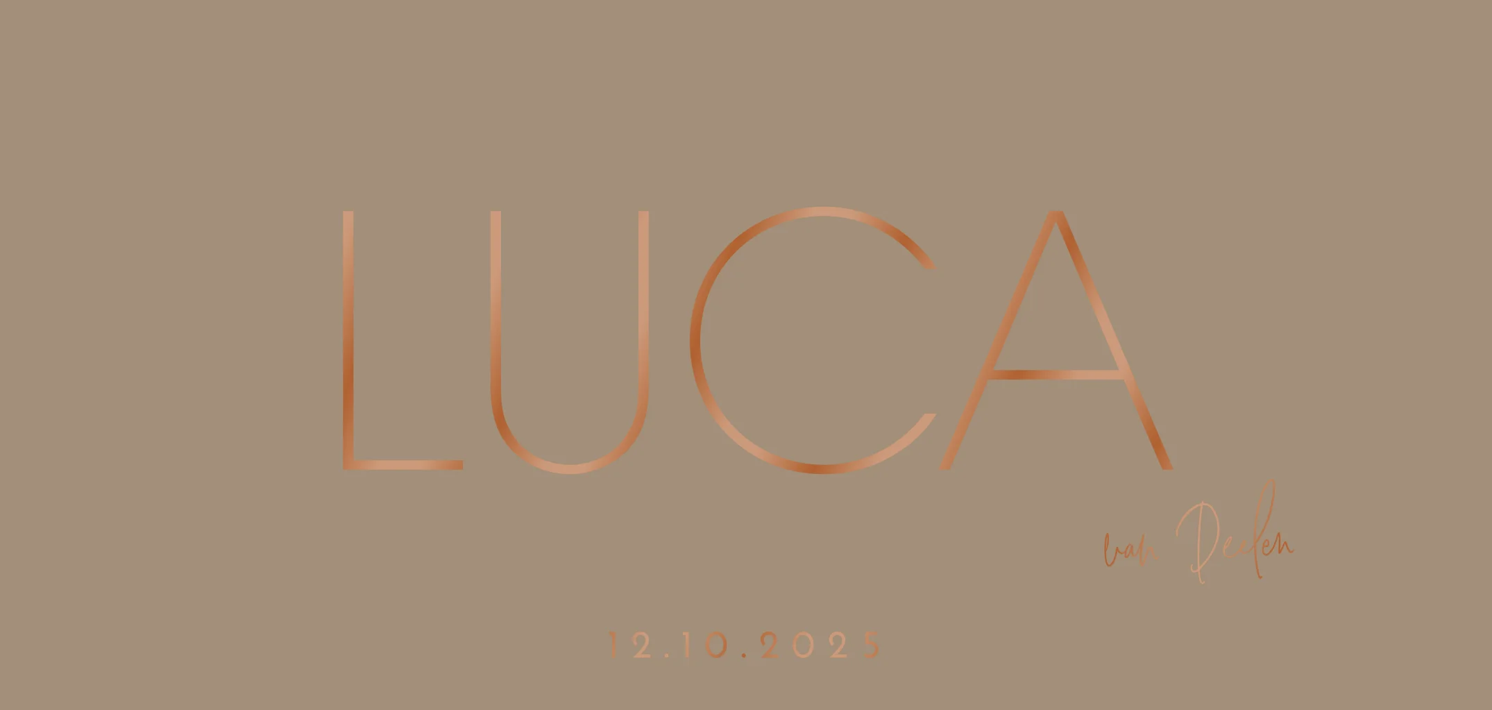Hip geboortekaartje voor een jongetje met de naam in hoogglans. De achtergrond is in de trendkleur van 2021. Deze mooie aardse tint past goed bij de hoogglans.