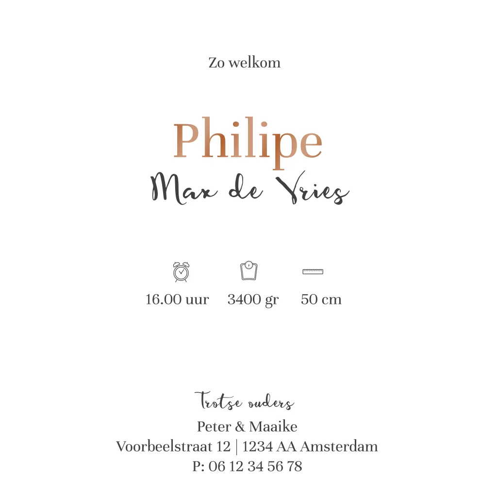 Hip geboortekaartje voor je zoon met een minimalistisch ontwerp. De babynaam wordt in hoogglans in hippe typografie op een achtergrond met de trendkleur petrol gedrukt. Echt een trendy geboortekaartje!
