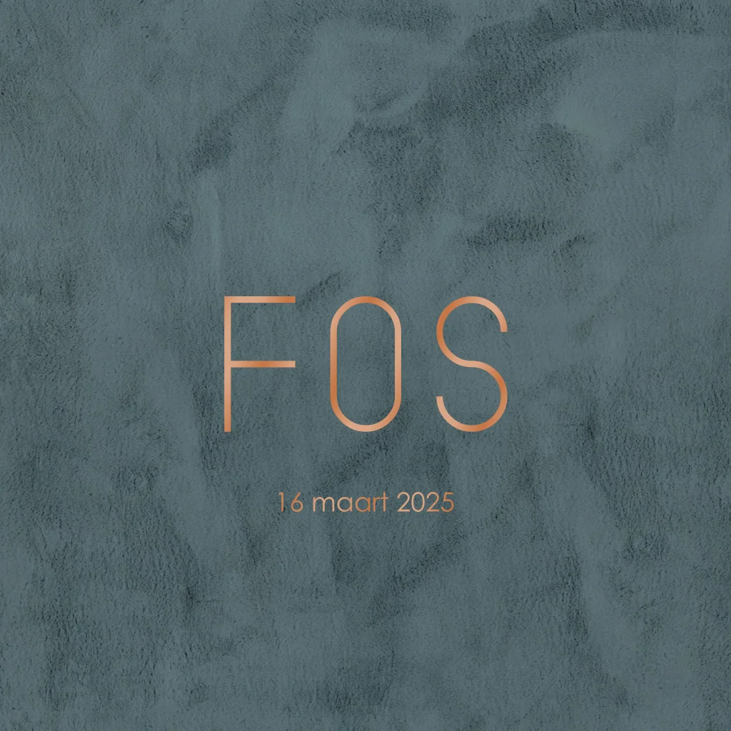 Hip, minimalistisch geboortekaartje voor een jongen in het grijsblauw met de naam in hoogglans. Pas de kleur van het hoogglans aan in de online editor.