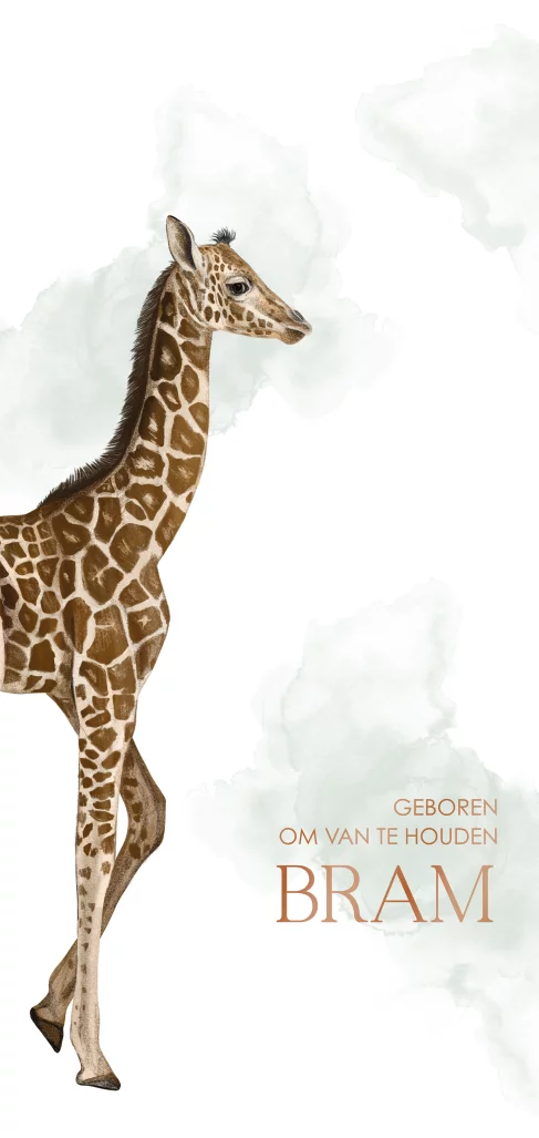 Watercolour geboortekaartje jongen met giraffe en hoogglans