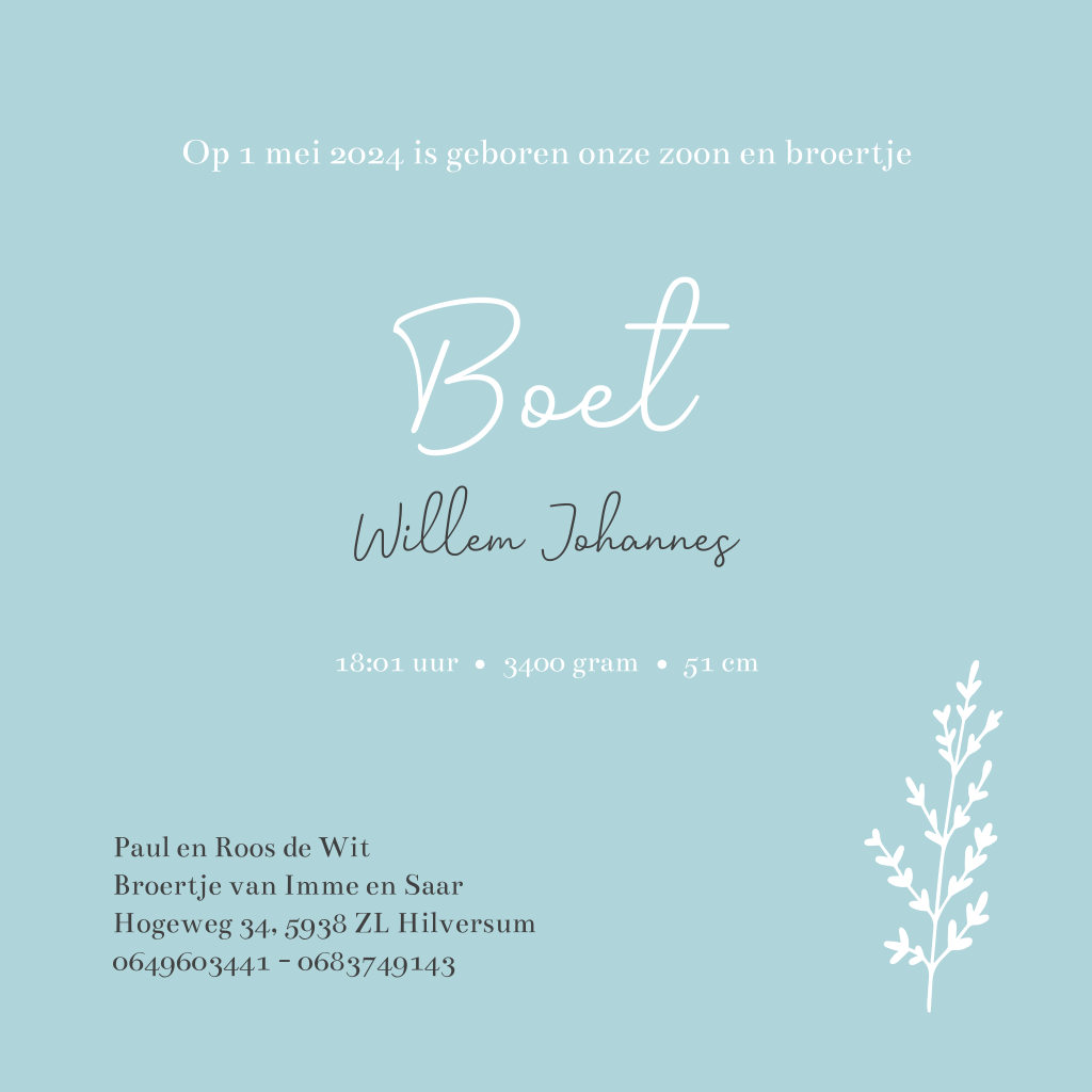 Minimalistisch geboortekaartje met lief takje en voorletter