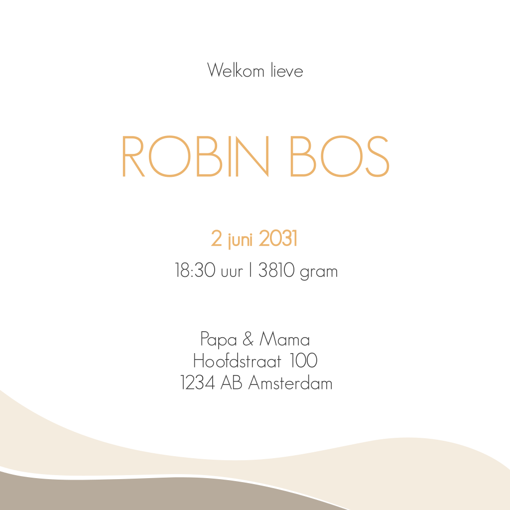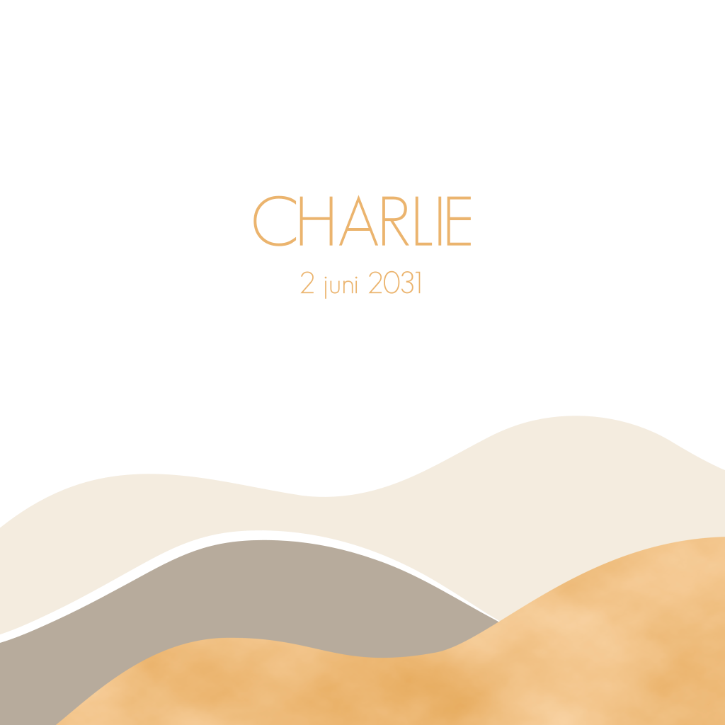 Een minimalistisch en stijlvol geboortekaartje voor jouw kindje. Met vlakken in aardetinten krijgt het kaartje verschillende lagen. De lijnen, sterren en de maan is in zilverfolie gedrukt. Pas het kaartje naar wens aan.