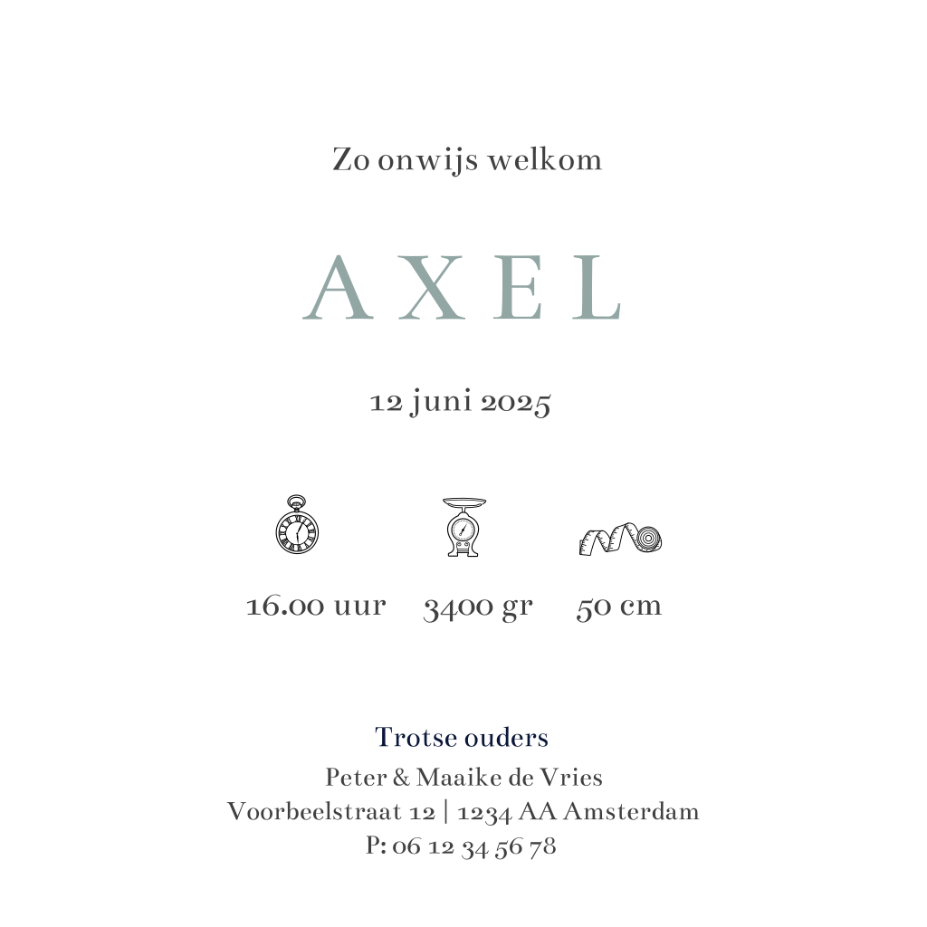 Hip en minimalistisch geboortekaartje voor een jongen. Het takje in zilverfolie op de voor- en achterkant maakt dit luxe kaartje helemaal af!